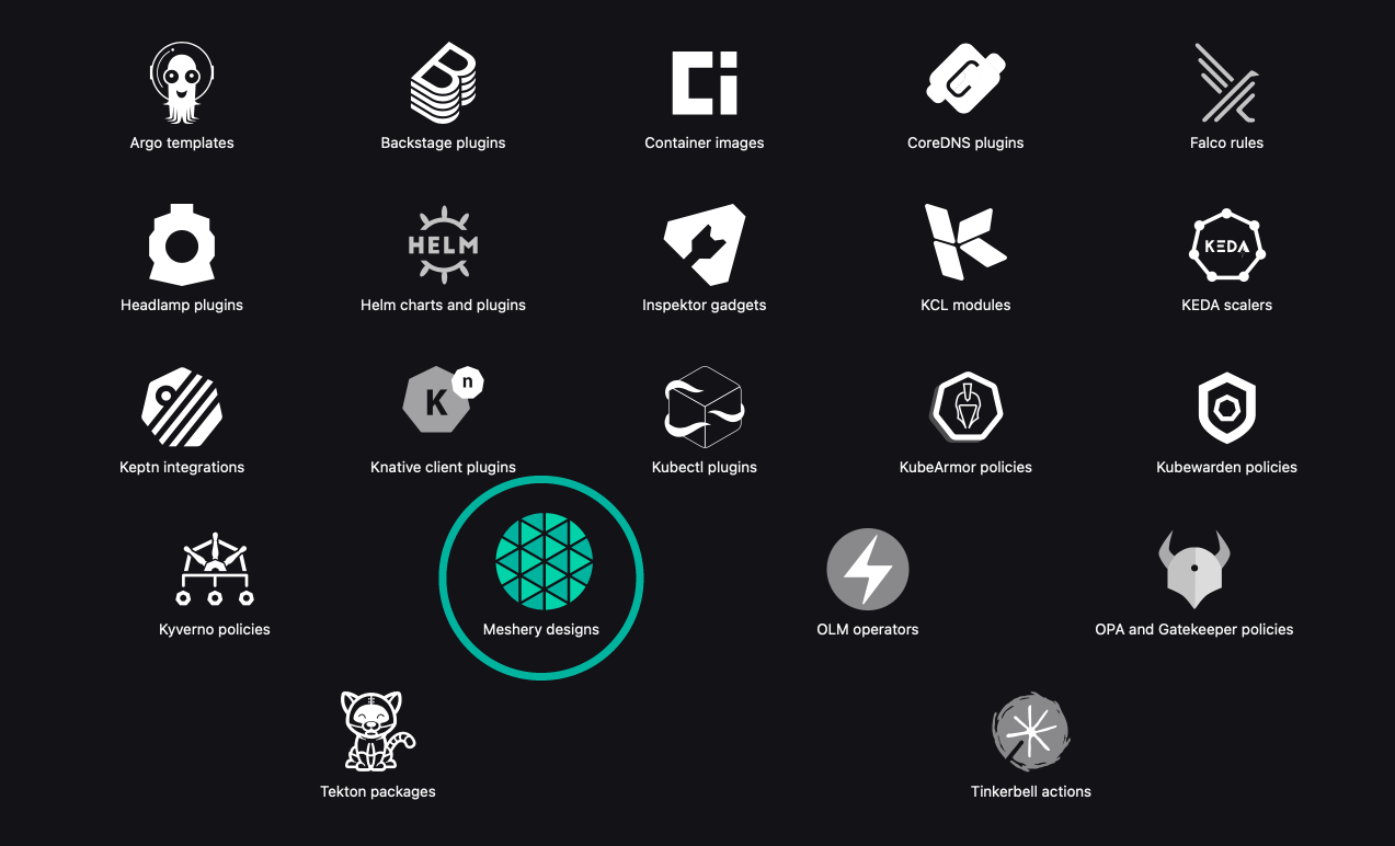 Making Meshery Designs available through Artifact Hub is an important milestone and was only possible through excellent support from the Artifact Hub team. We hope that you enjoy using Artifact Hub even more now that Meshery Designs are now available on Artifact Hub as a new artifact kind!